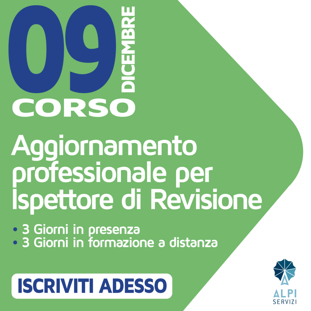 Corso di aggiornamento professionale per Ispettori di revisione obbligatorio per il mantenimento dell’abilitazione. Il percorso formativo è disposto dall’Autorità competente (Direzione Generale per la motorizzazione).